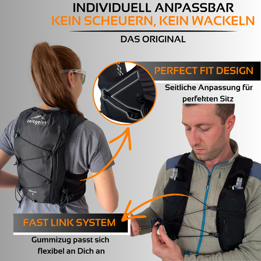 Die zeitgeist Laufwesten bieten dank der flexiblen Anpassungsmöglichkeiten maximalen Komfort und uneingeschränkte...