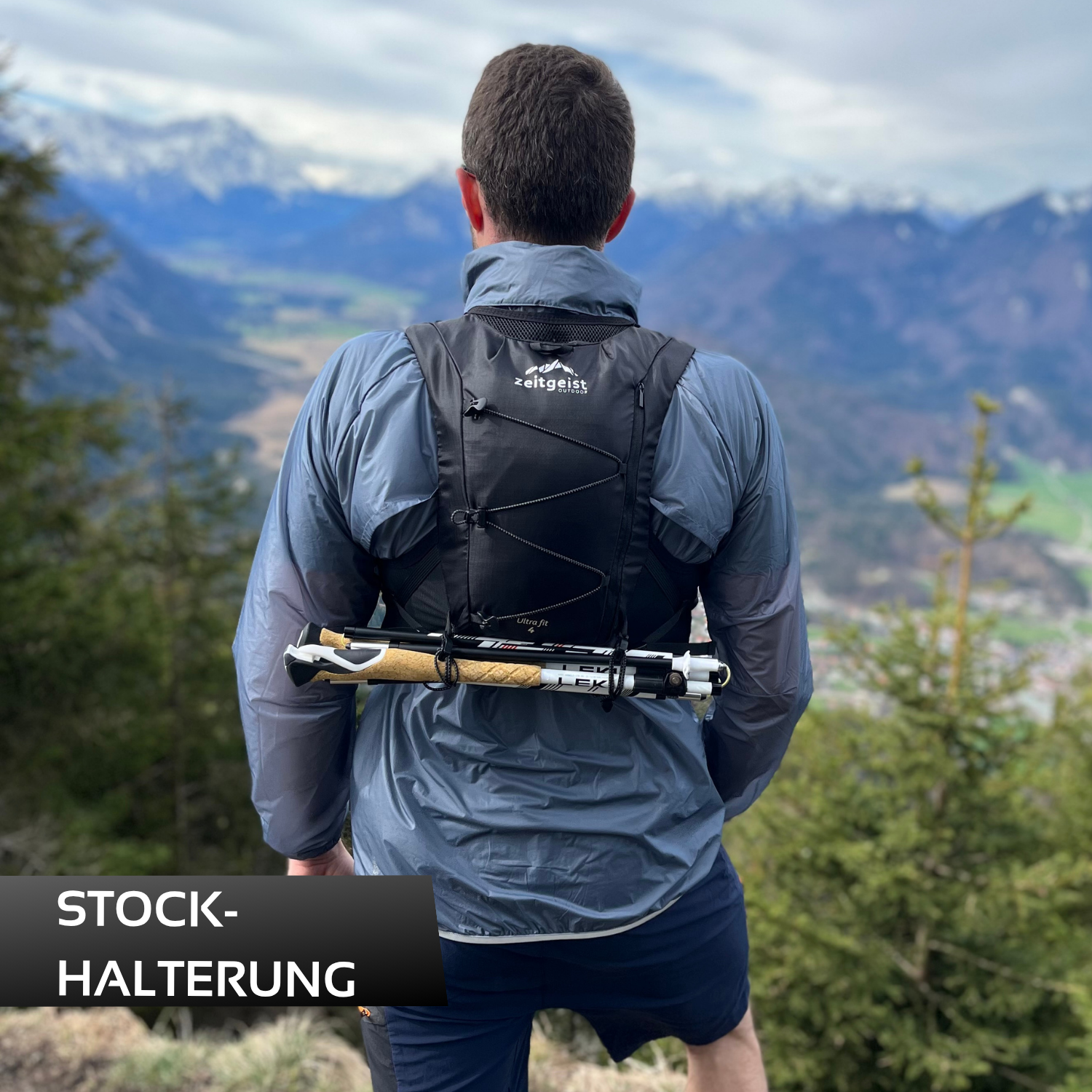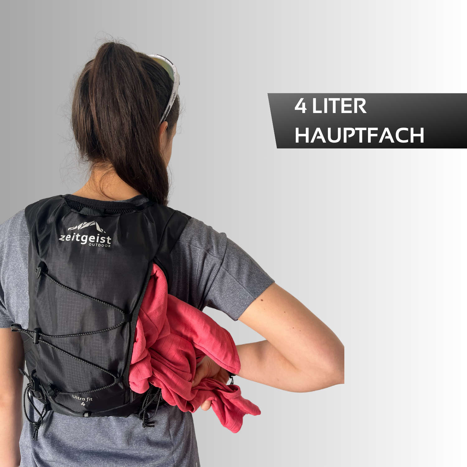 - Trailrunning: Die Weste muss wirklich eng sitzen, damit die Laufweste vollbeladen und im Downhill nicht wackelt oder scheuert.