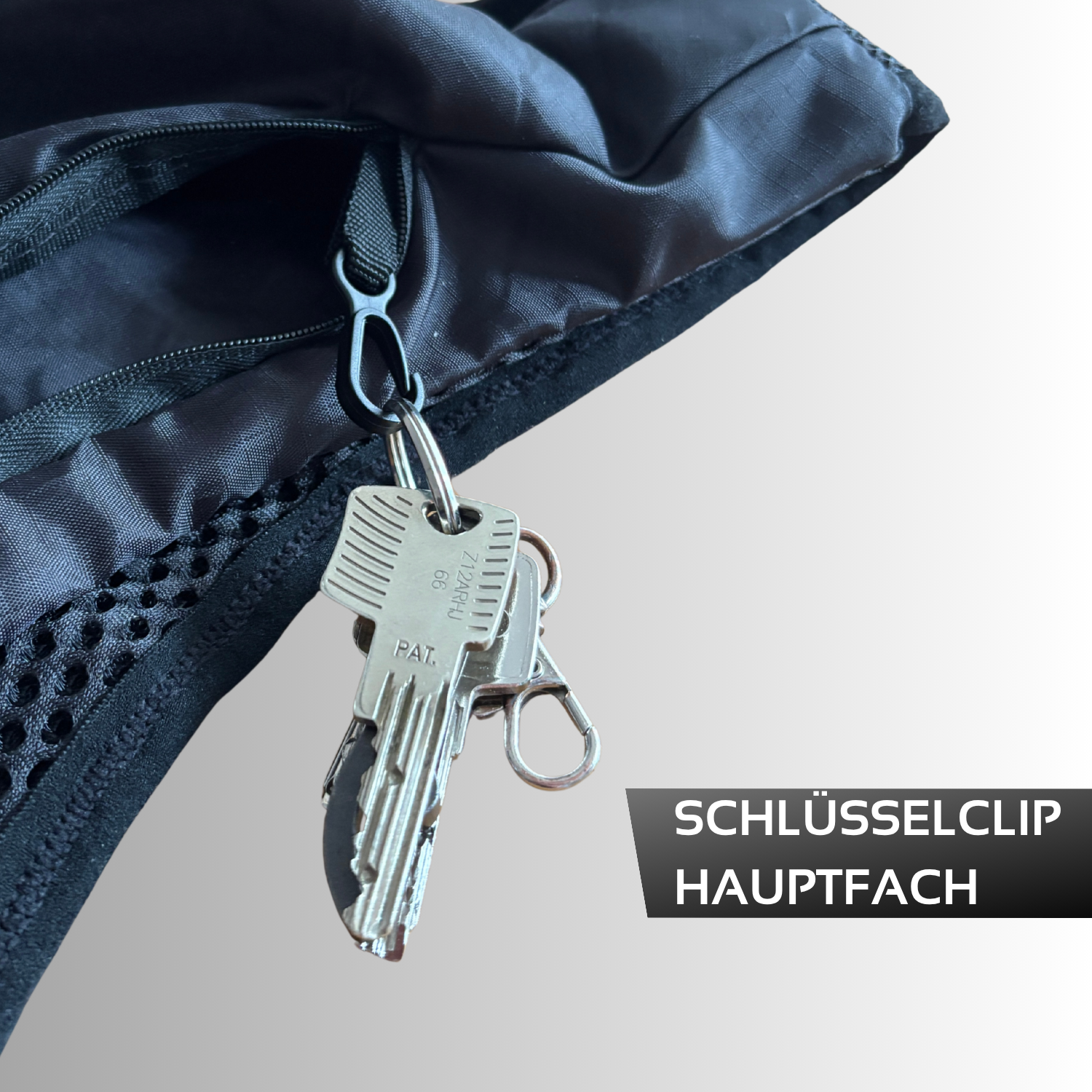 - Schlüsselclip im Hauptfach